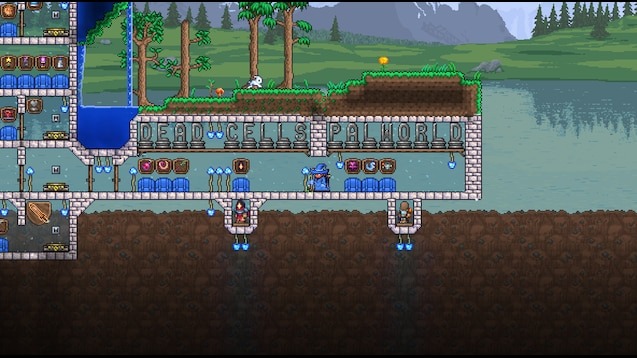 - Отдельные зоны предметов: выделенные области для контента Palworld и Dead Cells.