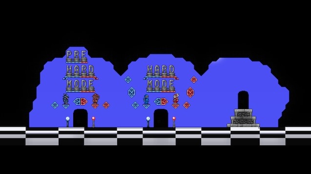 - 1vs1 Pre-Hardmode: арена для дуэлей на этапе до хардмода, с соответствующим уровнем экипировки.