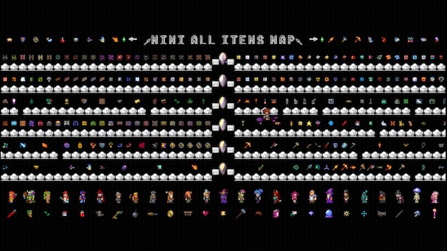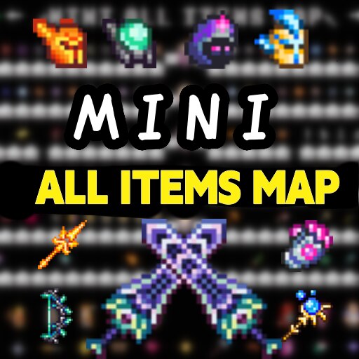 MINI All Items Map – 1.4.4.9 — это практичный инструмент для игроков Terraria, которым нужен полный набор предметов в максимально сжатом и удобном формате, без лишнего оформления и отвлекающих элементов.