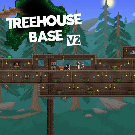 Tree House Base V2 — пользовательская карта для Terraria, представляющая собой улучшенную версию базы в виде большого дерева. Автор называет её своим вторым экспериментом с постройкой подобного типа. Карта отличается более простой, но продуманной структурой, что делает её удобной для начала игры или заселения всех NPC.