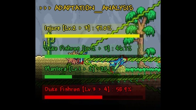 AdaptionWheel and SwordOfExtermination — это мод для Terraria, который добавляет уникальные механики адаптации и боевых трансформаций, вдохновленные аниме Jujutsu Kaisen (особенно способностью Mahoraga к адаптации) и мечом истребления. Мод предоставляет игроку динамическое снаряжение, которое развивается вместе с боевым опытом, а также уникальный меч с изменяющимися свойствами в зависимости от выбранного типа энергии. Он включает кастомный интерфейс для отслеживания прогресса адаптации и визуальные эффекты, такие как динамическая тряска экрана.