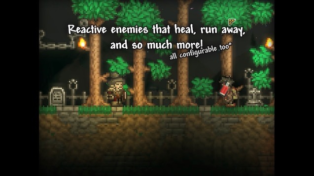 Armed Zombies! — это мод для Terraria, который превращает обычных ближних врагов в умелых, вооружённых мечами и топорами противников, добавляя динамичную и настраиваемую систему боя на поверхности. Зомби и другие враги теперь ведут полноценные дуэли с персонажем, используя замахи, удары, рывки, а также проявляют инстинкты выживания — убегают в страхе или лечатся при критическом повреждении. Всё это полностью настраивается под ваш стиль игры. Мод сохраняет базовые механики Terraria, добавляя новые возможности для настоящего веселья в ближнем бою.