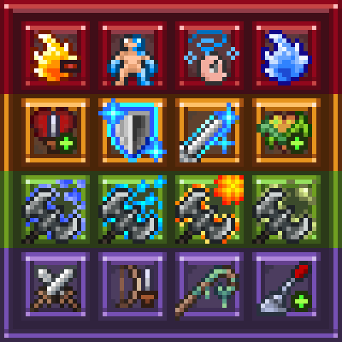 - Фиолетовая рамка — баффы комбинированных зелий, получаемые через AlchemistNPC Lite.