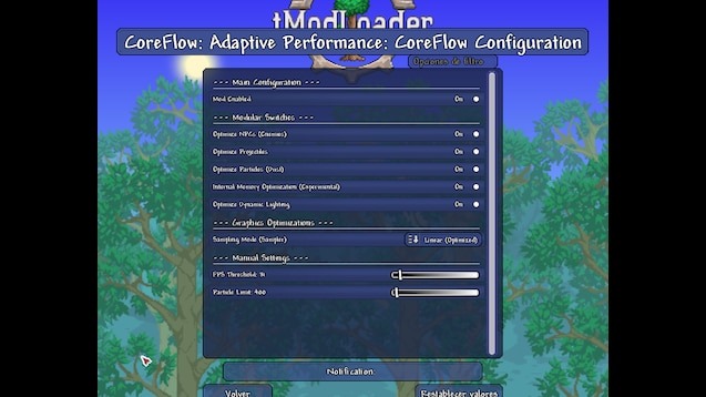 CoreFlow Lite — это легкий визуальный утилитарный мод для Terraria, созданный для стабилизации производительности в ситуациях с высокой графической нагрузкой. Версия Lite упрощена до строгого соответствия стандартам разработчиков, исключая экспериментальные функции и сосредотачиваясь исключительно на оптимизации визуального окружения. Мод работает на стороне клиента и не вмешивается в логику игры или работу других модов, обеспечивая безопасное улучшение плавности отображения.