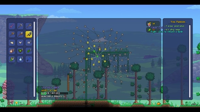 Item Passive Tree — это клиентский мод для Terraria, который добавляет уникальные случайные пассивные деревья для всех типов предметов: оружия, инструментов, брони и аксессуаров. Каждый предмет теперь может накапливать опыт и открывать очки в своей пассивной системе, что позволяет глубже кастомизировать игровые возможности и стиль игры. Мод активно развивается и поддерживает мультиплеер, предоставляя гибкие настройки для игроков любого уровня.