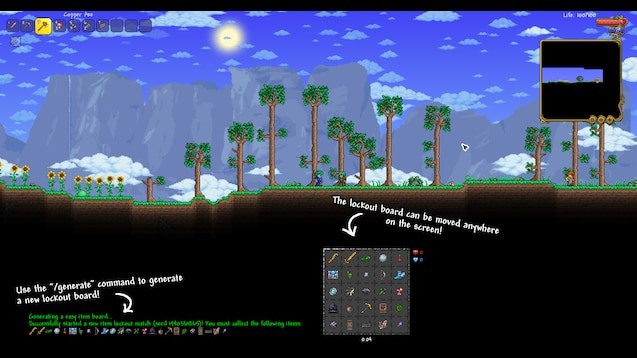 Kepples’ Item Lockout — это мультиплеерный мод для Terraria, который добавляет возможность устраивать «блокировки предметов» между друзьями или соперниками. Он идеально подходит для командных соревнований, добавляя элемент стратегии и соревновательной динамики в игровой процесс. Мод рассчитан на новые персонажи и свежие миры, где каждая команда стремится собрать уникальные предметы быстрее противников.