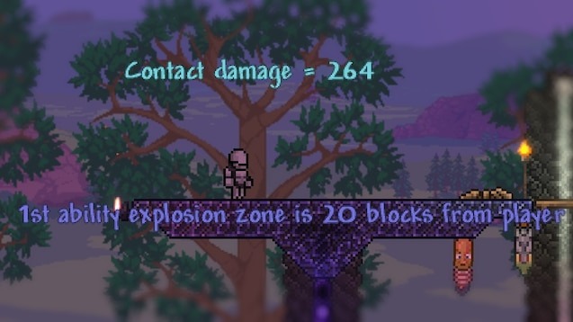 - Контактный урон наносится врагам, которые атакуют вас. Урон масштабируется с вашей защитой и множителями ближнего боя, удваивается для боссов. Формула урона: Defence × 2 × Melee-Crit-Chance × Melee-Damage-Multiplier.