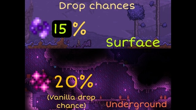 Этот мод восстанавливает механику из старых версий Terraria для мобильных устройств и консолей (до версии 1.3), в которых Души Света (Souls of Light) и Души Ночи (Souls of Night) могли выпадать при убийстве врагов на поверхности в биомах Порчи, Багрянца и Освящения.