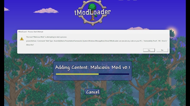 tModGuard — это мод для Terraria, созданный для повышения безопасности пользователей tModLoader в условиях роста числа вредоносных модификаций, распространяемых через Steam Workshop. Он ориентирован на защиту системы игрока от подозрительных действий модов, которые могут пытаться выходить в интернет, запускать сторонние процессы или получать доступ к файловой системе. Решение работает как временный защитный слой до появления полноценного официального инструментария безопасности со стороны разработчиков tModLoader.