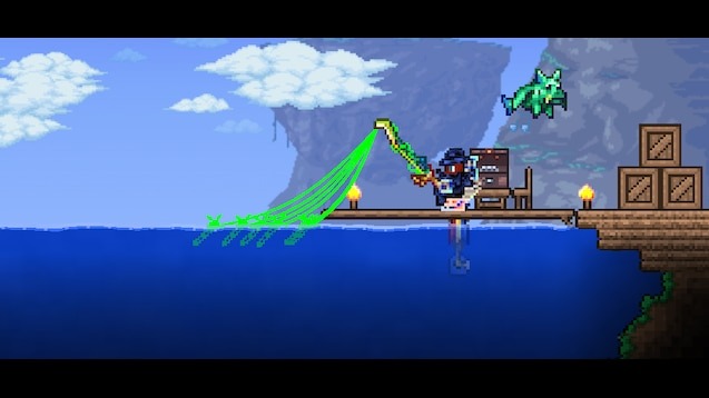 - Добавлены десятки удочек для разных стадий игры: Pre-Hardmode, Hardmode и эндгейм.