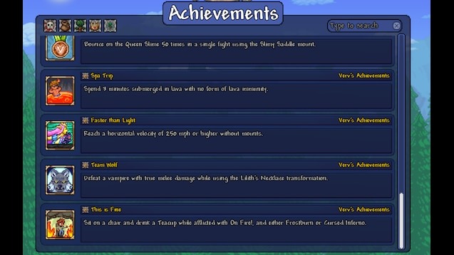 Verv’s Achievements — это мод для Terraria, который расширяет игровой опыт, добавляя новые достижения как для творческого, так и для сложного прохождения. Он подходит для одиночной игры и мультиплеера, позволяя игрокам получать дополнительные цели и испытания, делая игру более увлекательной и насыщенной. Мод также активно поддерживается автором, который собирает обратную связь для улучшения работы достижений, особенно в многопользовательском режиме.