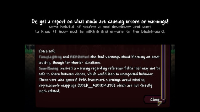 - F10 — сканирует логи на наличие ошибок и предупреждений от модов.