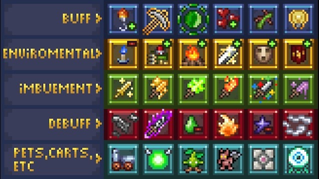 Этот ресурс-пак делает баффы в Terraria более понятными и эстетически приятными, улучшая игровой опыт без изменения баланса или механики игры.