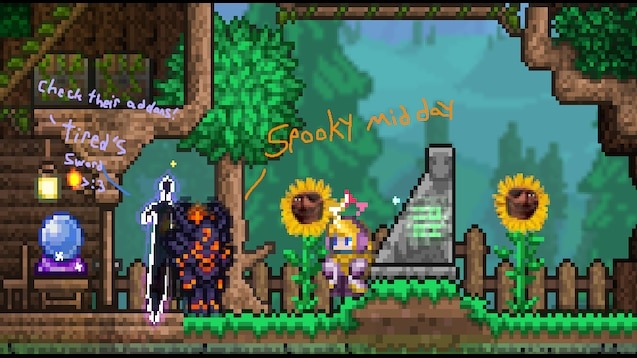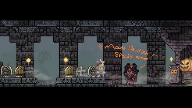 Текстура Spooky Devil превращает стандартный набор брони Spooky Armor в более зловещую и дьявольскую версию. Теперь этот комплект украшен выразительными рогами и получил по-настоящему мрачный вид, подчеркивающий ужасающую эстетику. Помимо этого, автор переработал Ash Wood Set, придав ему тот же пугающий и демонический облик, создавая единый тематический стиль.