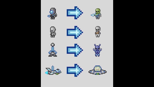 Текстуры Waifu Martian Madness для Terraria полностью переосмысляют внешний вид противников из события Martian Madness, превращая их в стилизованных аниме-персонажей. Такой подход меняет привычное восприятие события, добавляя игре более лёгкий и необычный визуальный стиль. В пак также включены дополнительные альтернативные варианты текстур, что делает оформление врагов более разнообразным.
